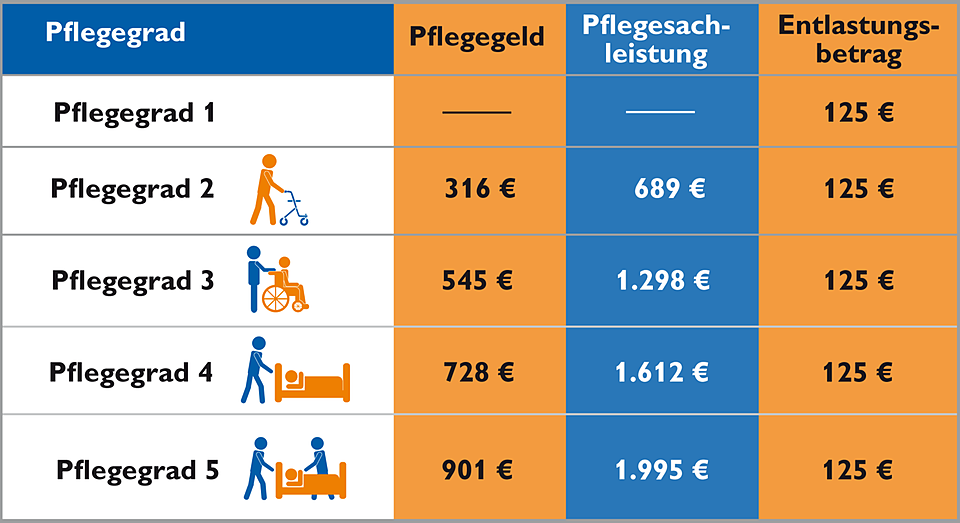 Ganz gleich, in welchen Pflegegrad Sie möglicherweise eingestuft werden: Sie können eine fachkundige Pflege nach Ihren individuellen Ansprüchen sicherstellen – ohne dass Ihre Rente oder Vermögenswerte deshalb eventuell aufgezehrt werden. Zugleich schützen Sie Ihre Angehörigen. Denn wenn Ihre privaten Mittel nicht ausreichen oder diese aufgebraucht sind, müssen Ihre Kinder oder der Ehepartner den Eigenanteil Ihrer Pflegekosten tragen.
